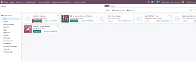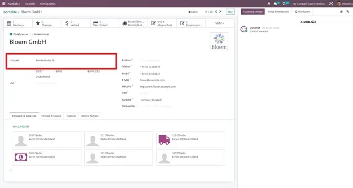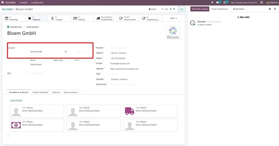 Funktionen des Moduls „Erweiterte Adressen“ in Odoo