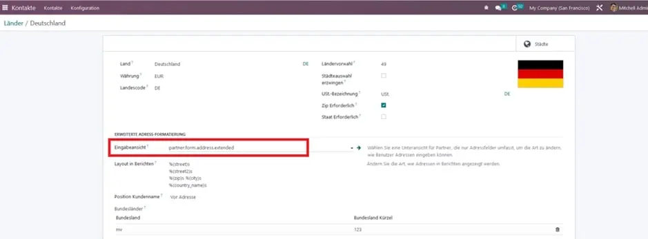 • unter Eingabeansicht nun „partner.form.address.extended“ auswählen